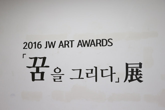 2016 JW Art Awards는 “꿈을 그리다”라는 부제를 안고 지난 11월 16일부터 27일까지 서울 혜화동 한국장애인문화예술원 이음센터에서 전시회를 가졌다. 중외학술복지재단에서 주최하고 (사)꿈틔움에서 주관한 이번 공모전은 총 211점의 작품이 접수됐고, 그 중 35점이 수상작으로 선정됐다. JW Art Awards는 올해는 발달장애 아티스트들의 예술적 재능을 발굴하고 지원하기 위해 발달장애인을 대상으로 공모를 진행하였다. 올해 공모전의 대상은 여행 중 어느 카페에서 한가로이 밖을 내다보며 손님을 기다리는 여인의 모습을 표현한 이대호 작가의 <기다림>이 차지했다. “기다림” 누가 무엇을 기다리고 있다는 것일까? 그 기다림의 대상은 작가의 어머니일 수도, 사랑하는 연인일 수도, 혹은 꿈꾸는 미래일 수도 있을 것이다. 이대호 작가를 소개하는 작가노트에는 이대호 작가가 어려서부터 말보다 그림으로 표현을 더 잘했다고 기록돼 있다. 또, 섬세한 스케치와 남다른 관찰력으로 사소한 부분까지 놓치지 않고 묘사하는 것이 이 작가의 특징이라고 한다. 이대호 작가의 <기다림>이라는 작품을 보면, 이용채 시인의 <기다림의 시> 가운데 일부가 떠오른다.