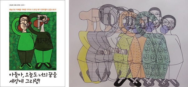 한부열 작가(이하 ‘한 작가’)는 자폐2급의 장애인입니다. ‘자폐’라는 단어는 자신만의 세상에 갇혀 있다는 것을 뜻합니다. 어린 시절 한 작가는 엄마도 제대로 부르지 못하고 뛰어다니거나 소리를 지르거나 노래를 부르고 몸을 앞뒤로 흔들어 대는 등의 통제가 불가능한 극단적인 강박 증세를 보이며 세상과 교류하지 못했습니다. 하지만 세상과 소통이 거의 불가능한 수준의 자폐성향을 가지고 있는 한 작가는 그림을 통해서 세상과 소통하기 시작했습니다. 그림을 그릴 때만큼은 몇 시간이고 집중력을 보이는 한 작가는 그림으로 세상에 현실성을 부여하고 자신의 욕구와 생각들을 표현합니다. 그림은 그가 바라본 세상을 묘사하고 감정을 표현하는 ‘언어’입니다. 한 작가는 세상과 공유하기 위한 발판을 그림을 통하여 찾아냈고, 상상력의 범위를 넓혀가며 작품세계를 확장해 왔습니다. ![]() 한 작가가 세상을 보는 독특한 방식은 그의 작품 속에 녹아져 있습니다. 그는 어린 시절 사람들이 자신을 향해 손을 흔드는 것을 보며 다른 사람에게 인사할 때는 그 모습을 흉내 내었습니다. 그 사람의 손바닥이 자신을 향했던 것처럼 자신의 손바닥이 자신을 향하도록 손을 흔들어 인사를 하였던 것입니다. 지금은 반복적인 학습을 통해 다른 사람과 똑같이 손바닥을 바깥으로 하여 인사를 하지만 여전히 그가 그린 그림 속에서는 손바닥이 아닌 손등을 보이고 있습니다. 이렇듯 한 작가의 작품에는 다른 사람들과 다른 시각들이 수없이 많이, 작고 작은 디테일들로 드러나 있습니다. “부열이는 시력이 한 5.0 정도 되는 것 같아.” 라고 한 학창시절 선생님의 말처럼, 그는 비장애인으로 분류되는 사람들이 절대 보지 못하는 현상의 이면을 꿰뚫어봅니다. 또한, 한 작가의 작품에는 자폐성 장애인의 강박증이 나타나 있습니다. 그가 그리는 그림은 극도로 정교하며 침착함을 필요로 합니다. 그러나 그림에서 나타나는 강박증은 예술로써 내부적 통합을 이루어 갑니다. 그의 작품 속에는 선들이 선명하게 살아있고, 그림의 형태는 대칭적이며 반복적입니다. 이러한 그만의 독특한 기법은 보는 사람으로 하여금 강렬하게 빠져들게 합니다. 자폐성 장애인만이 가질 수 있는 독창적 시각이 그의 특별한 작품세계를 단단히 구축한 것입니다. 한 작가만의 작품 특징 중 하나는 ‘원샷 원킬’입니다. 작가는 30cm 자를 이용하여 빠른 드로잉으로 작업을 하는데, 펜을 잡으면 놓지 않고 한 번에 그림을 완성하며 그려나가는 동안 그림을 지우거나 수정하지 않기 때문입니다. 또한, 그의 작품에서는 인물이 겹쳐져 있고, 앞과 뒤를 모두 평면으로 보여줍니다. 이러한 작품 특징은 입체파를 연상시킵니다. 자폐라는 장애를 갖고 있지만 국내 라이브 드로잉 1호 화가가 된 한 작가는 중국 청도, 동대문 DDP 등지에서 개인전을 개최했고, 예술의 전당에서 열린 ‘2015 KPAM 대한민국미술제’에 유일한 장애인 화가로 참여했으며, SK 이노베이션 본사 등지에서 라이브 드로잉 퍼포먼스를 진행했습니다. 누구나 잘하는 것이 있고 좋아하는 것이 있습니다. 그것들을 통하여 특별한 어떤 것이 아니어도 자신의 최대치를 끌어 낼 수 있다면, 분명 이 세상의 소통과 연결되어진다고 확신합니다. 그림으로 세상과 소통하며, 그림으로 세상의 공감을 얻어내는 아들을 키우면서 부족한 것을 억지로 채우려 하지 않고 부족한 것이 아닌 잘 할 수 있는 일에 집중하면 어떤 장애물도 극복할 수 있다는 교훈을 얻었습니다. 사람이 살아가면서 진정한 목표가 행복한 삶이라면 우리 아이들은 이미 그것을 이룰 수 있는 조건을 가지고 태어났습니다. 바로 부모입니다. 우리 부모들은 아이가 좋아하고 잘 하는 것이 있다면 최선을 다해 할 수 있도록 밀어줄 테니 말입니다. 한계라는 것은 없다고 생각합니다. 자폐 장애를 치료와 제재의 대상으로 보고 장애 증상을 완화시킨다는 특수교육의 틀 안에 아이를 가두는 것이 아니라 아이가 즐거워하는 것을 찾아주면 불가능해 보이는 것도 천천히 이루어 낼 것입니다. 「아들아, 오늘도 너의 꿈을 세상에 그리렴!」, 이 책을 통해서 이 땅의 모든 부모들에게 우리 아이들이 꿈과 재능을 펼치도록 믿고 도와주면 작은 기적을 체험할 수 있으며, 행복한 삶을 만들어갈 수 있다는 것을 전달하고자 합니다. |