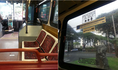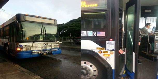 Kneeling bus는 신체 장애인이나 노인을 위해 승강문을 낮출 수 있는 버스를 말한다. 하와이 호놀룰루의 대중교통은 버스와 택시, 그리고 관광객들이 대부분 이용하는 전차 형태의 트롤리가 전부라고 할 수 있다. 지하철과 기차는 없다. 승용차 이용이 보편화되어 있는 미국이지만 운전을 할 수 없거나 자가용을 소유하지 않은 시민들은 대부분 버스를 이용한다. 하와이 호놀룰루의 버스는 The Bus 라는 브랜드명을 가지고 있으며 공영으로 운영되고 있다. 약 80여개의 노선으로 이루어져 있으며, 버스 이용이 어려운 중증장애인이나 노인, 그리고 버스노선이 닿지 않는 곳에 거주하는 장애인, 노인들을 위한 The Handi-Van Service를 별도로 운영하고 있다. 호놀룰루 버스는 크기에 따라 여러 가지 형태가 있지만 편의시설에 따라 크게 두 가지로 구분된다. Kneeling bus와 Lift bus이다. 즉, 호놀룰루의 모든 버스는 노인이나 장애인이 이용할 수 있는 편의시설을 갖추고 있다는 것이다. 우리나라에서 휠체어 장애인이 버스를 이용하려면 저상버스 시간에 맞추거나 그 버스가 올 때까지 기다려야 하는 것과는 달리 하와이에서는 단지 버스시간에 맞춰 버스정류장에 나가기만 하면 된다. 노인이나 장애인이 승하차할 때 버스가 서서히 승강문 쪽으로 기울고 낮아지는 것을 경험해보면 '아, 이게 무릎을 굽히는 거구나.' 라는 것을 실질적으로 체험할 수 있다.