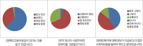 장애인식개선 - 장애바로알기 캠페인Ⅱ 편집팀 장애를 바라보는 여러분들의 시각은 어떠한가요? 장애인직업안정연구원에서는 서로 다름을 인정하고 배려하는 사회, 장애인들과 더불어 함께 사는 사회를 만들기 위하여 2012년부터 네이버 해피빈과 함께 “장애바로알기 캠페인”을 진행하고 있습니다. 올해도 지난해에 이어 “장애바로알기 캠페인 Ⅱ”(이하 캠페인)를 진행하였으며, 약 3,000명정도의 많은 사람들이 설문에 참여하였습니다. 캠페인의 설문은 장애인식부분 문항 10개와 본 연구원의 장애인식개선사업인 웹진(通과) 계간지(삶과노동)에 대한 문항 10개로 구성되었으며, 다양한 내용의 문항을 통해 설문에 참여하는 사람들의 장애에 대한 인식 조사는 물론, 자연스레 장애인식개선에 도움을 주고자 하였습니다. ![]() <설문참여자의 성별, 연령대, 직업> 설문은 위의 그래프에서 보는것과 같이 여성과 학생들의 참여가 가장 많은 것으로 나타났지만, 대체로 10대에서 60대까지 다양한 연령과 다양한 직업을 가진 응답자들이 참여를 하였음을 볼 수 있습니다. 그리고 거의 대부분의 응답자들이 장애인의 날(4월20일)과 장애정도가 가장 심한 장애등급(1급)에 대한 내용들은 잘 알고 있었습니다. 하지만 아직도 장애인을 부르는 공식적인 호칭과 장애유형에 대한 부분은 정확하게 알고 있는 응답자들이 많이 없었습니다. 호칭과 관련하여서는 비록 장애인과 장애우의 호칭에 대해 장애인에 대한 응답이 75%로 가장 많이 나왔지만, 여전히 장애우를 공식적인 호칭으로 알고 있다는 응답도 22%로 두 번째로 높은 응답률을 보이고 있다는 점에서 조금 더 호칭에 대한 인식의 개선이 필요하다고 보여집니다. ![]() 장애인(人)이라는 호칭은 1989년 장애인복지법이 제정되면서 법적인 공식용어로 자리 잡았으며, 장애우(友, 장애를 가진 친구)는 사회적으로 소외되어있는 장애인들에게 좀 더 친근하게 다가갈수 있도록 사용된 말이긴 하지만, 다음의 두 가지 문제점을 가지고 있습니다. 하나는 인칭의 문제로 장애우라는 표현은 타인이 나를 불러줄 때에만 사용가능한 비주체적인 용어여서 장애인이 자신을 부를 때는 쓰기에는 적절하지않다는 것과 또 다른 하나는 장애인을 스스로 주체가 아니라 비장애인의 친구로서인 상대적인 객체로서만 존재하게 함으로써 장애인에 대해 동정, 시혜적인 느낌을 주게 한다는 것입니다. 그러므로 장애우보다는 장애인이 더 적절하고 공식적인 호칭입니다. 또한 우리나라의 장애유형은 현재 15가지 유형(지체,뇌병변,시각,청각,언어,안면,신장,심장,간,호흡기,장루·요루,간질,지적,정신,자폐)으로 분류하고 있으며, 이중에 후각장애는 포함되지 않습니다. 하지만 45%의 응답자가 간장애를 장애유형이 아닌 장애로 응답해 주셨습니다. ![]() 사회적인 정책부분에 대한 문항에서는 장애인고용부담금(장애인고용률이 낮을 때 내는 부담 비용)에 대해 63%의 응답자는 알고 있었지만, 모르고 있었다는 응답도 34%로 결코 적지 않은 비율을 차지하고 있음을 알 수 있었습니다. 또한 장애인의 고용 여부에 대한 응답에 관해서는 고용하겠다는 응답이 63%로 가장 높게 나타났습니다. 그에 반해 고용하지 않겠다의 응답률이 5%로 낮은 응답률을 보였습니다. 하지만 잘모르겠다의 응답이 31%로 전체결과의 1/3이상의 비율을 차지한 것으로 보아 여전히 장애인 고용문제에 대한 사람들의 관심과 인식이 긍정적이지만은 않다는 것을 알 수 있었습니다. 반면에 장애인 복지부분에 관련해서는 대부분의 사람들이 지금보다 더 많은 사회적 비용을 들여야 한다고 응답하였습니다. ![]() 개개인이 가지고 있는 장애인에 대한 생각과 결혼, 학교생활 등과 같은 개인의 삶과 밀접한 부분에 대한 문항에는 다음과 같은 응답을 보였습니다. 먼저, 가족 중 장애인과 결혼을 원하는 경우에 대한 응답에는 찬성한다와 반대한다가 각각 15%의 동일한 응답률을 보였으며, 대부분의 경우가 생각해본 후에 결정하겠다는 응답을 하였습니다. 장애인과의 결혼에 대해 확실한 응답보다는 생각의 여지를 남겨놓는 응답의 비율이 높게 나오기는 했지만, 고려해 볼 수 있는 여지를 보여준 것만으로도 개개인들의 장애인에 대한 인식이 나아지고 있지는 않나 라는 생각을 해봅니다. 또한 자녀가 장애를 가진 학생과 수업과 받는 경우에 대해서는 찬성한다가 78%로 대부분의 경우가 장애학생과 수업을 받는 것에 대해 긍정적인 응답을 하였습니다. 하지만 장애인에 대한 개인이 가지고 있는 거리낌에 대해서는 보통이다가 41%로 가장 많았고, 그다음이 그렇다 32%, 매우그렇다 14%, 아니다 8%, 전혀아니다 2%순으로 나타났습니다. 여전히 장애인에 대해서 대부분의 응답자들이 거리낌을 느끼는 등 부정적인 인식을 가지고 있다는 것을 볼 수 있었습니다. 이번 캠페인을 통해 사람들이 가지고 있는 장애에 대한 인식과 생각들을 알 수 있는 좋은 시간이 되었습니다. 여전히 선입견과 부정적인 인식들이 남아있긴하지만, 그래도 많은 사람들이 장애에 대해 올바른 이해와 인식을 가지려 노력하고 있다는 것을 알게되었습니다. “장애바로알기 캠페인 Ⅱ