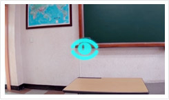 눈과 귀가 불편한 사람들을 위해 개발된 미래형 안경. 카메라같이 설정을 조작하며 사용할 수 있습니다. 또한 음성인식 시스템을 탑재하여 사전에 등록해놓은 목소리가 들리면 그 방향에서 신호가 보입니다. 목소리를 듣는 대신 자막을 통해 대화가 가능해집니다. 배터리가 없을 때는 태양열을 이용한 급속충전기능이 자동으로 실행됩니다. 안경의 배터리를 충전하는 동안 청각장애인 친구가 빌려준 안경을 쓰고 있습니다.